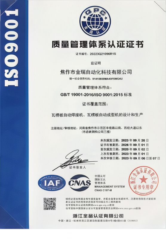 質(zhì)量管理體系認(rèn)證證書(shū)